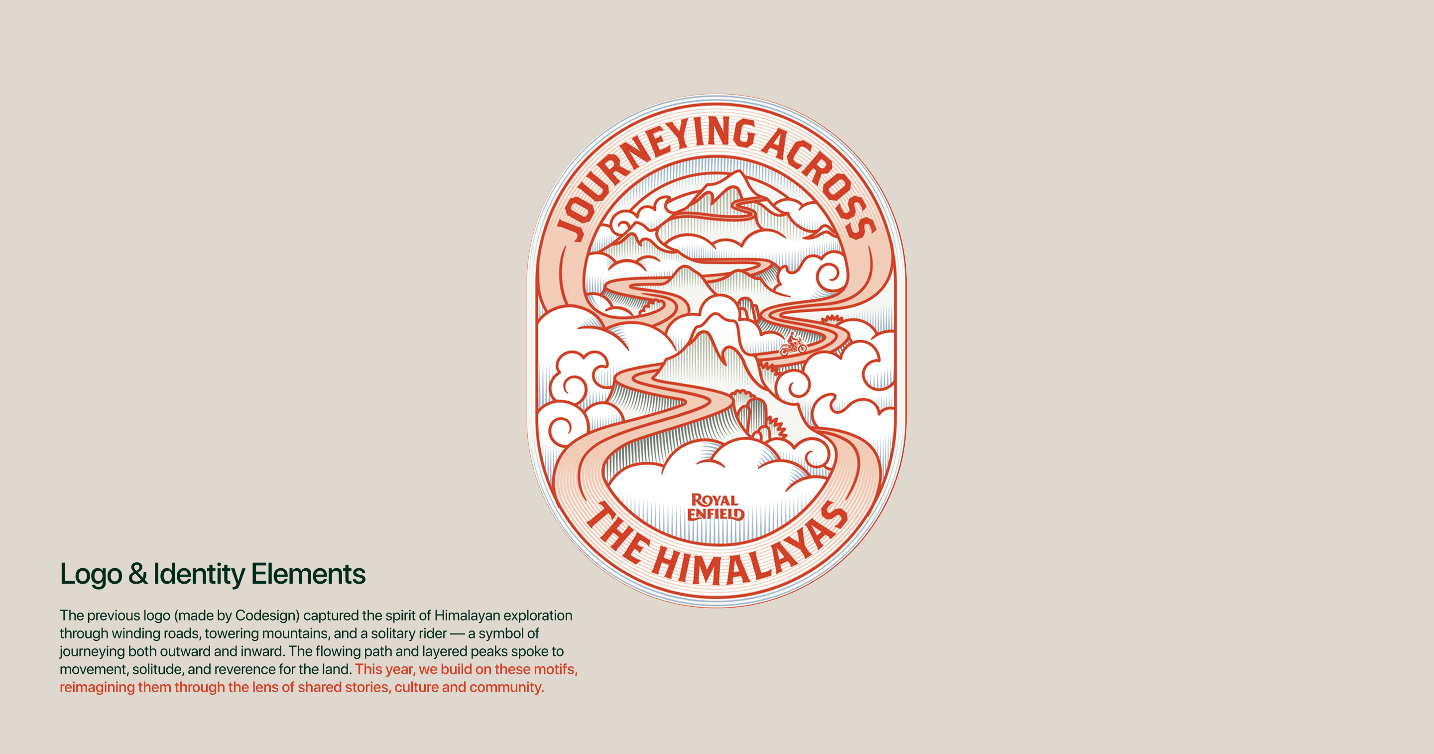 We believe the true luxury of today isn’t a shiny object, it is a wild horizon, the engine roar, mountain air and a pulse of discovery. With Royal Enfield’s “Journeying Across the Himalayas,” we set out to design more than a festival identity, we crafted a gateway to becoming a part of the landscape, not just passing through it! It was about building a design system that carries the same grit, rhythm and freedom as the ride itself.